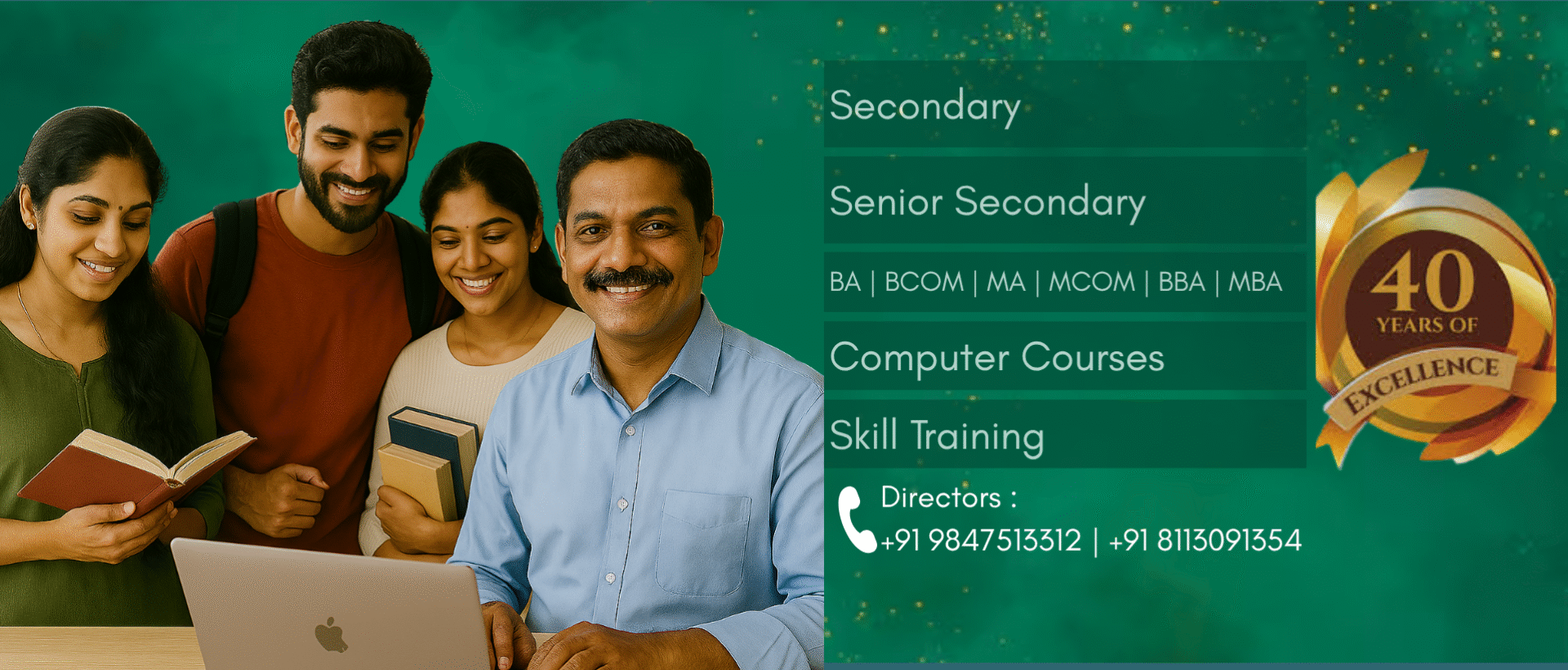 - Recognized parallel college near Aluva railway station with decades of academic excellence.